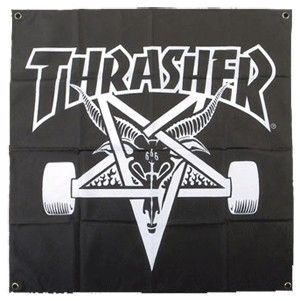 Bannière carrée Thrasher "Skate Goat" en nylon, avec des oeillets dans les coins.