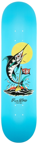 5Boro planche skateboard Fish Series Manhattan Marlin 8.0 X 32 : avec grip Mob 9' classique offert, grippée par nos soins*. La planche de skateboard 5Boro est fabriquée en érable à 7 plis pour une robustesse optimale. Connue pour son design graphique original, elle arbore un motif distinctif qui reflète l'esprit urbain. Avec un concave moyen, cette planche offre un excellent contrôle et réactivité, idéale pour les skateurs cherchant à réaliser des tricks avec style.