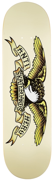 Anti-Hero planche skateboard Classic Eagle 8.62 X 32.56 Cream : avec grip Mob 9' classique offert, grippée par nos soins*. La planche de skateboard Anti-Hero incarnent l'authenticité et la robustesse, idéales pour les skateurs de tous niveaux. Conçues avec des matériaux durables et un excellent pop, elles garantissent performance et contrôle pour le street, le park ou le bowl. Avec son graphisme brut et emblématique, elle reflète l’esprit rebelle et sans compromis de la marque Anti-Hero.