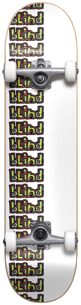 Skateboard complet Blind 7.375 X 29.78 Blind Repeat Rail Stocking Wht. Le skateboard complet Blind est fabriqué en érable à 7 plis pour une robustesse optimale. Conçu pour offrir un excellent pop et une maniabilité précise, il est équipé de roues Blind de 52 mm et de trucks polyvalents. Son design emblématique et coloré fait de ce skateboard un choix idéal pour les skateurs cherchant à allier performance et style classique.