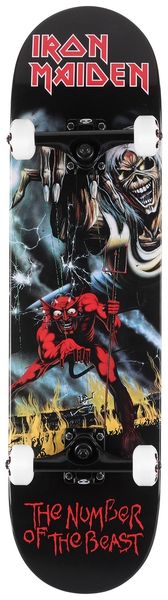 Zero skateboard complet 8.0 Iron Maiden Number Of The Beast. Le skateboard complet Zero est fabriqué en érable à 7 plis pour une robustesse optimale. Équipé de roues de 52 mm et de trucks, il offre une excellente maniabilité. Pré-assemblé et pré-grippé, ce skateboard est parfait pour les skateurs débutants et intermédiaires cherchant à allier performance et style original.