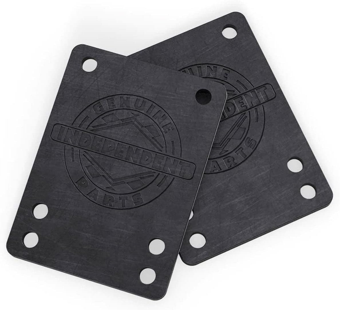 Pair of flexible pads, to be placed between the board and the truck, raises the truck and absorbs vibrations.