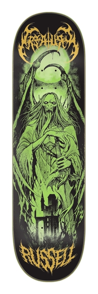 Creature planche skateboard Russell Nightwatch Lg Vx 8.6 X 32.11 : avec grip Mob 9' classique offert, grippée par nos soins*. La planche de skateboard Creature se distingue par son esthétique originale et son esprit dark. Fabriquée en érable canadien ultra robuste, elle offre durabilité et un pop puissant, parfaite pour les skateurs engagés en street, park ou bowl. Son design saisissant, souvent inspiré d’univers macabres, en font un choix emblématique pour les riders au style affirmé.